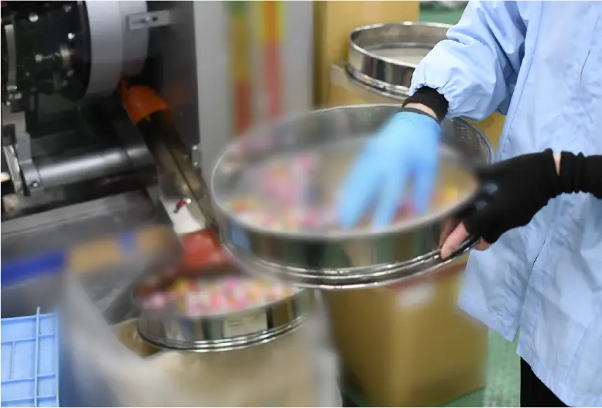 業務内容(手作業) 業務内容(手作業) SERVICE ホーム » 業務内容(手作業) 計量 箱詰め 検品 お菓子の小分け(アソート) 貴社ご要望に合わせて商品の小分け・包装(リパック)・アソート作業を行います。 お菓子の包装・梱包・箱詰め ご指定の包装に小分け・梱包いたします。ジッパー付きの商品のパックも可能です。 お菓子の計量・ボトル詰め 決まった量(個数・グラム)で小分けやボトル詰めを行います。 受注の流れ ①お問合せ まずは、お気軽にお問い合わせください。どんな些細なことでも結構です。 ②打合せ 商品の仕様・納期・ご予算・ご要望などをご用意いただき、打合せとなります。 ③お見積り 具体的な内容が決定しましたらお見積りとなります。内容をご確認いただきテスト・調整に入ります。 ④テスト・調整 ご希望の仕様でテストを行い、実際のものをご確認いただいて調整をかけていきます。 ⑤生産 調整等が済み、仕様が確定しましたら本機による生産となります。 ⑥納品 生産完了後、ご希望に沿った形で納品させていただきます。